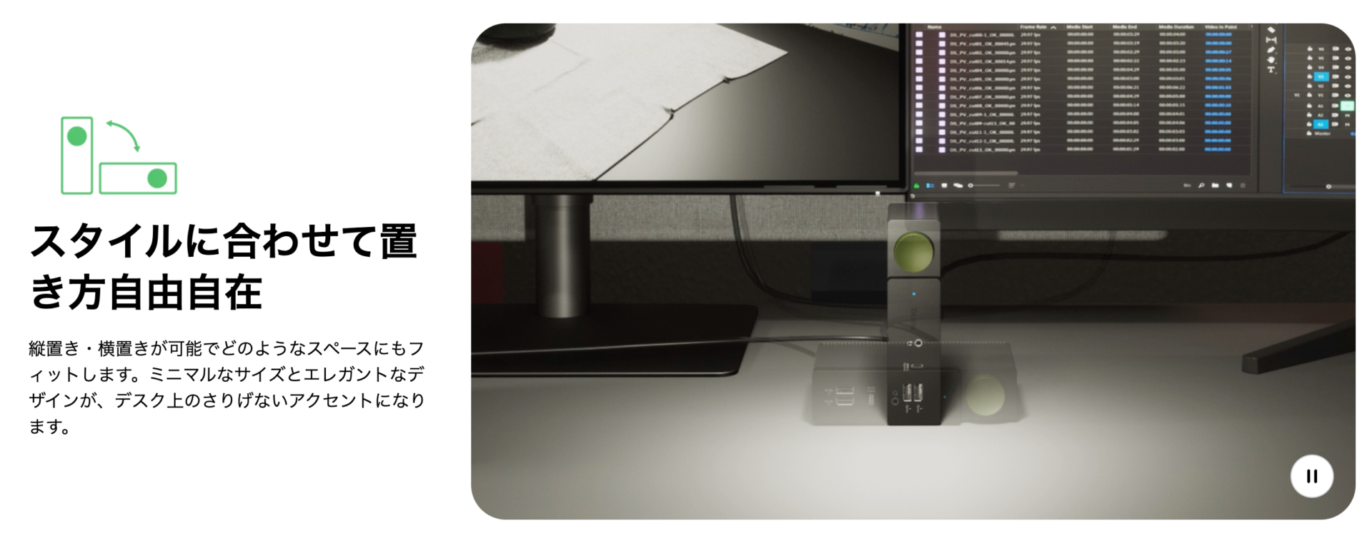これまではあまり目立たないようなところに隠して使用していたのですが、この大きさであればデスクの上に置いていてもそこまで場所もとらず、そこまでスペースが確保できない環境でも問題なく使用できます。