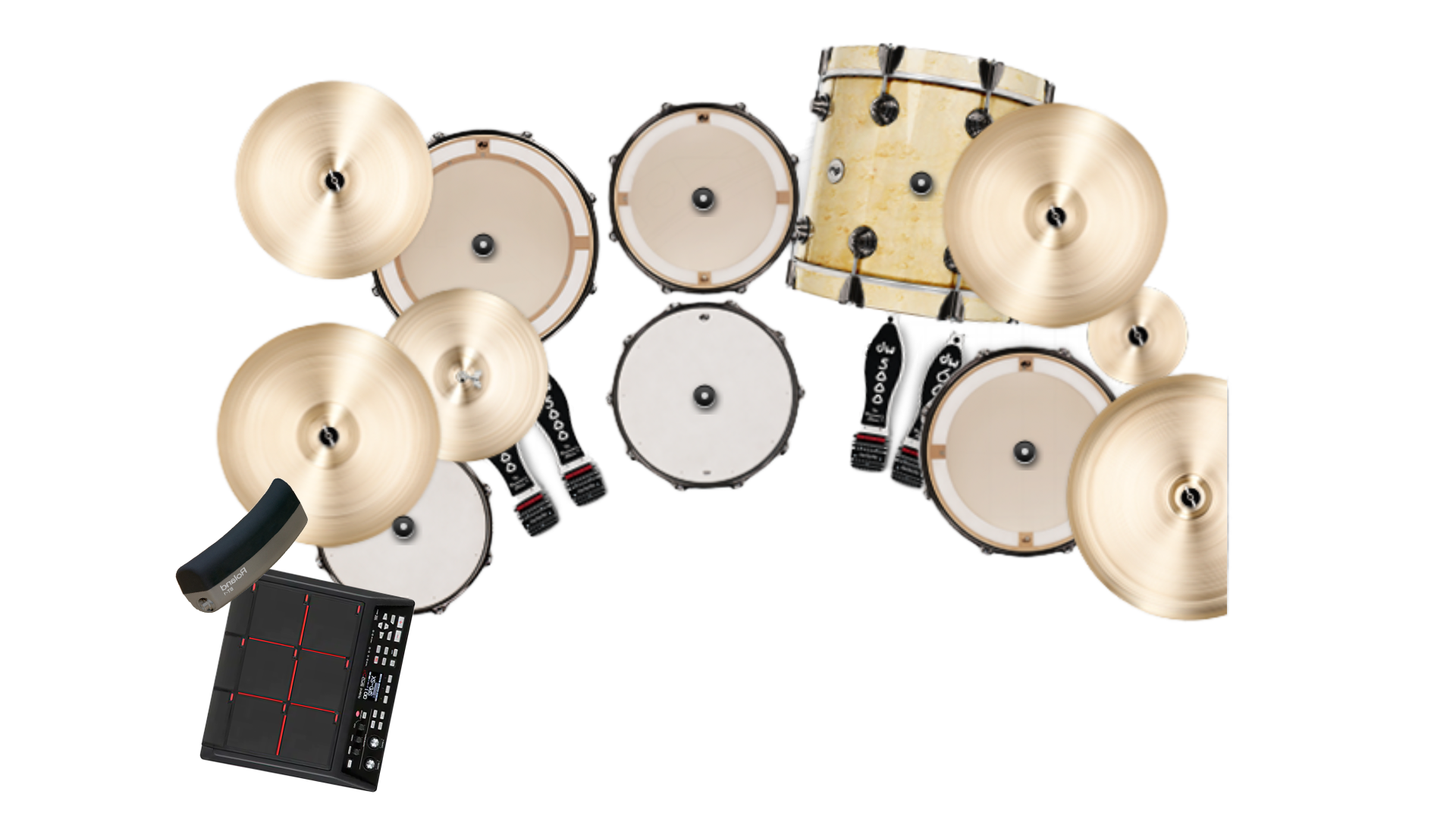 セッティング図には載っていませんが、トリガーパッドとペダルをTD-30に接続して使用しています。