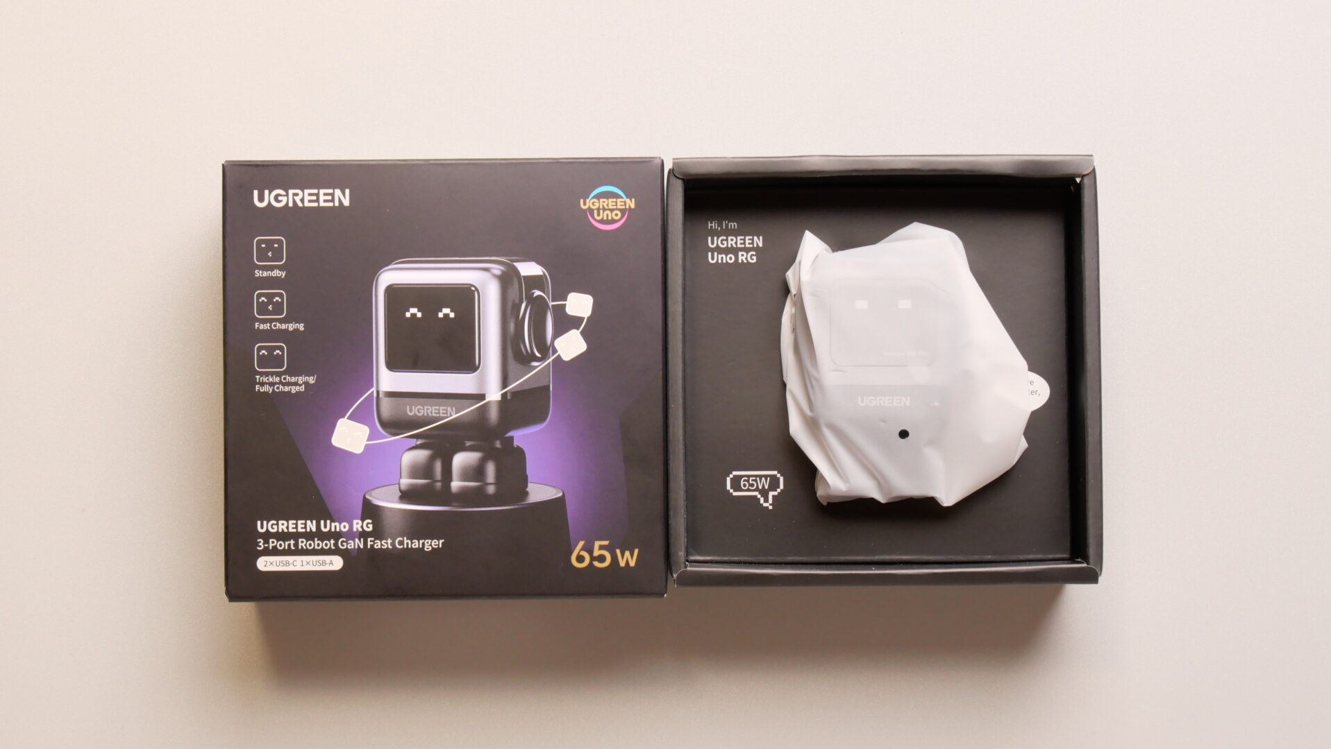 UGREENの急速充電器、Uno 65Wをレビューしました。PCデスクや枕元のコンセントに繋げて常に視界に入る位置に置いておくとなんだかマスコットみたいでとても癒やされます。