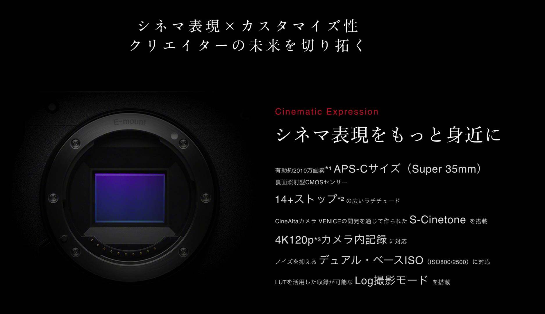 ・有効画素数2010万画素 APS-Cサイズ(Super 35mm)