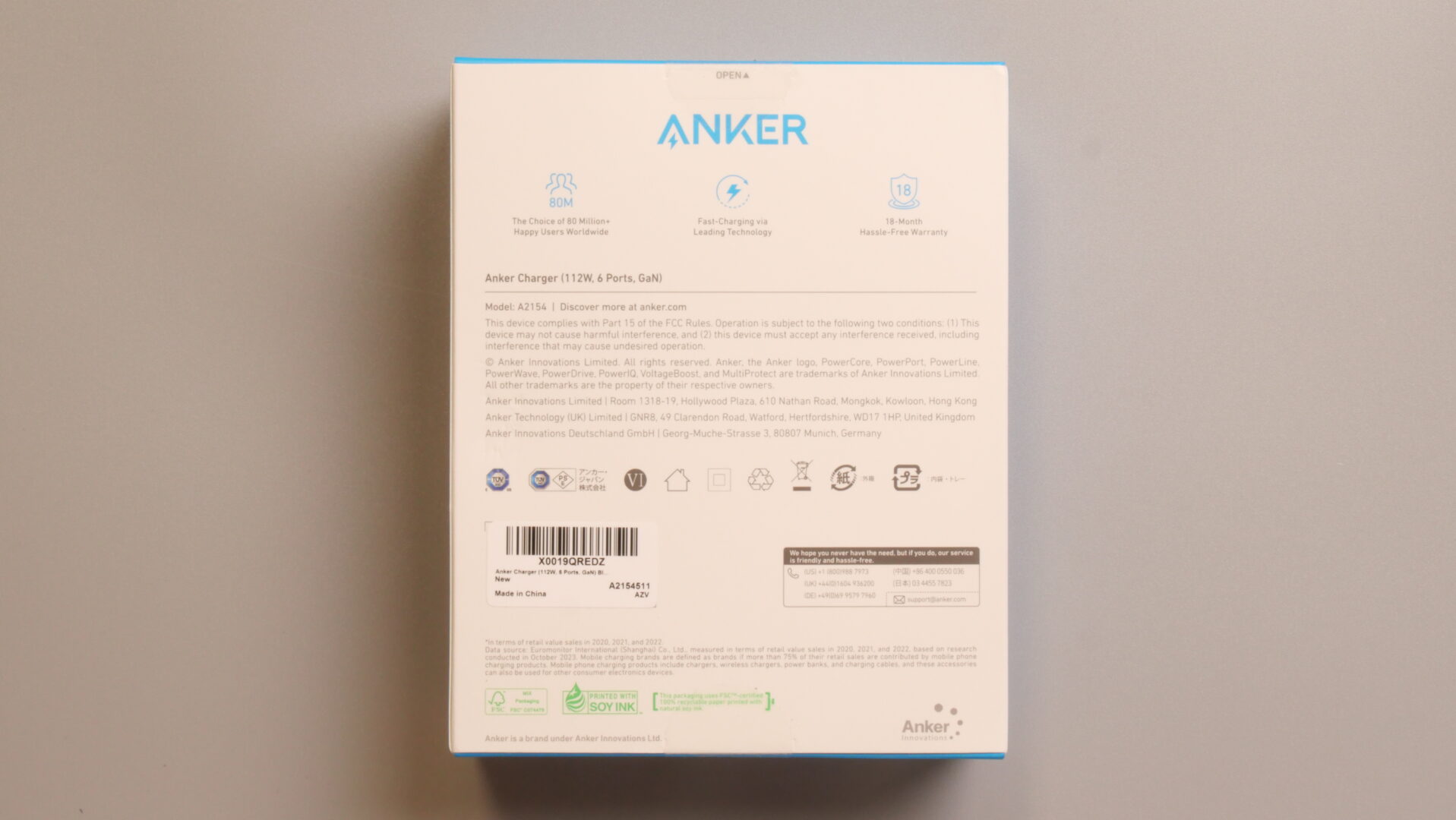 Ankerの急速充電器、Anker Charger (112W, 6Ports, GaN)をレビューしました。